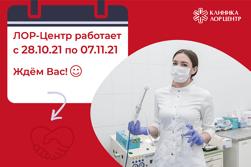 Помощь специалистов ЛОР центра доступна в "нерабочие" дни с 28.10 по 07.11.21